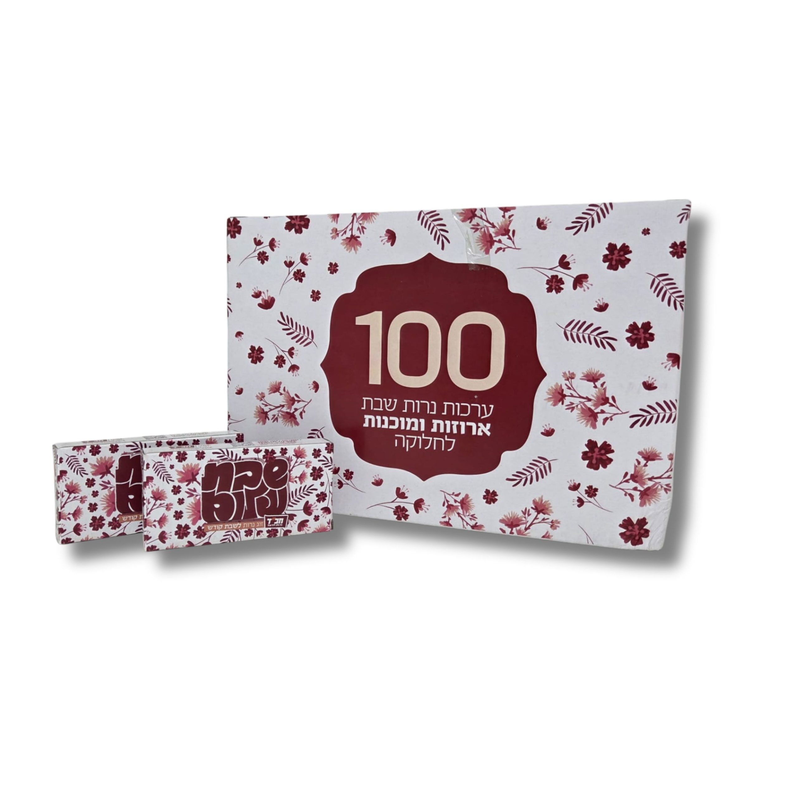 100 קופסאות לנרות שבת ארוזות ומוכנות לחלוקה.